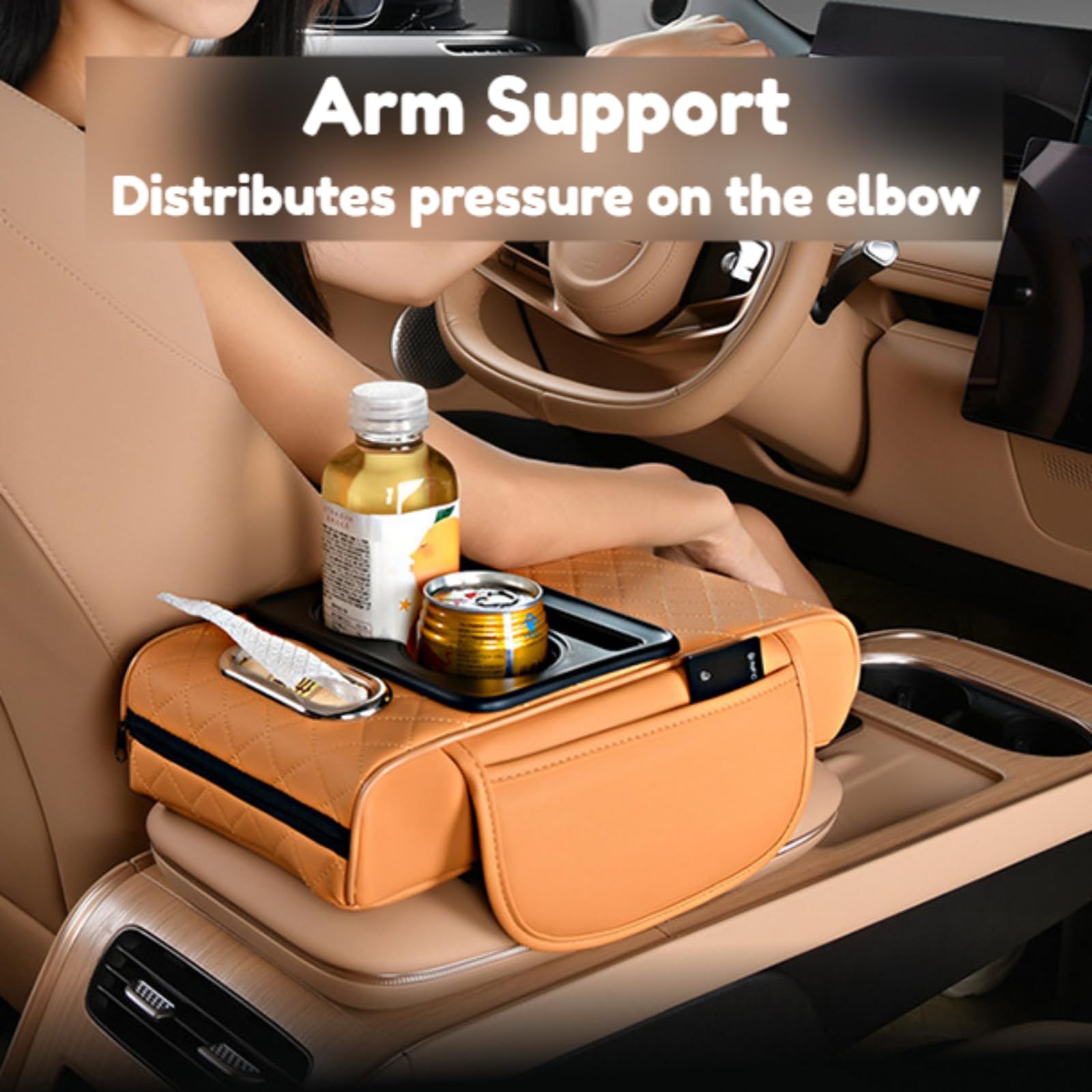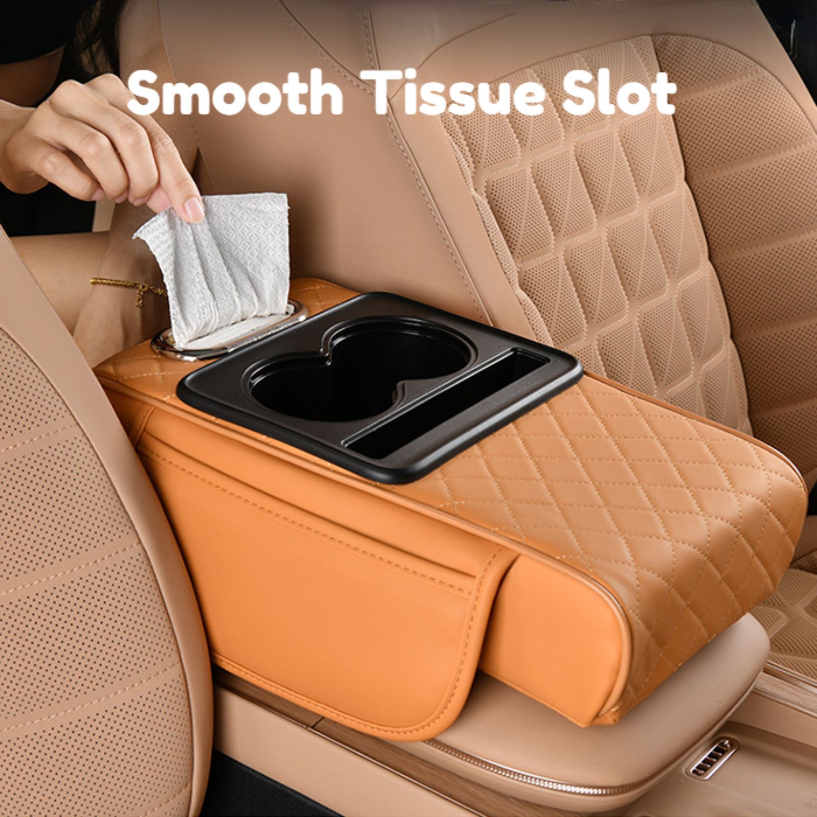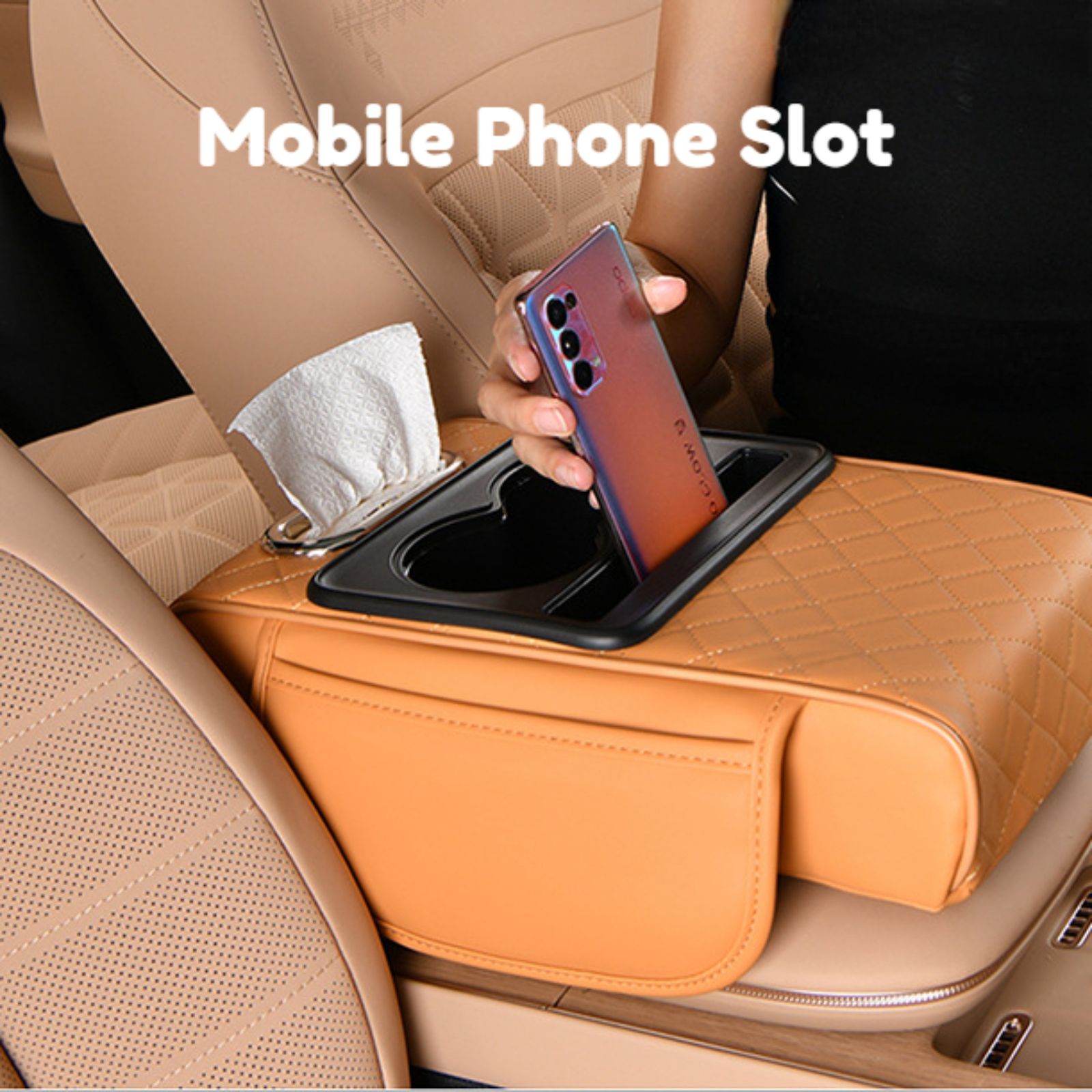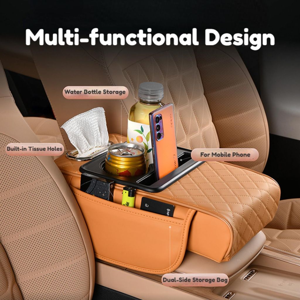 🔥Hot Seller🔥 COD!Car Armrest Pad, 5-in-1 Center Console Cover with 2 Storage Pockets, Cup Holders, Tissue Holder Slot, and Phone Holder丨 Suitable for Sedans丨Car Interior Storage Accessory