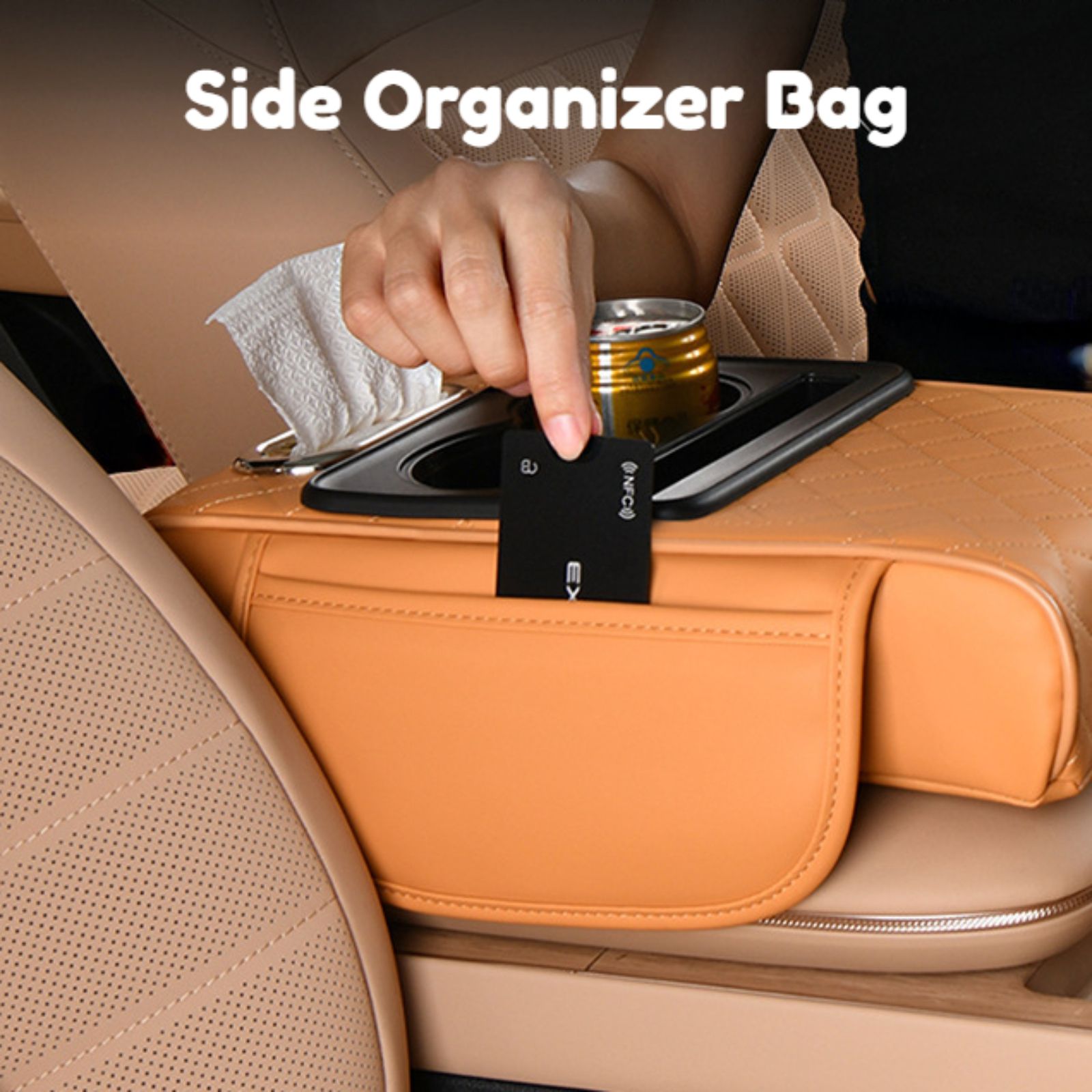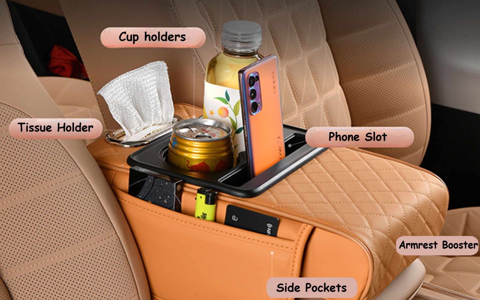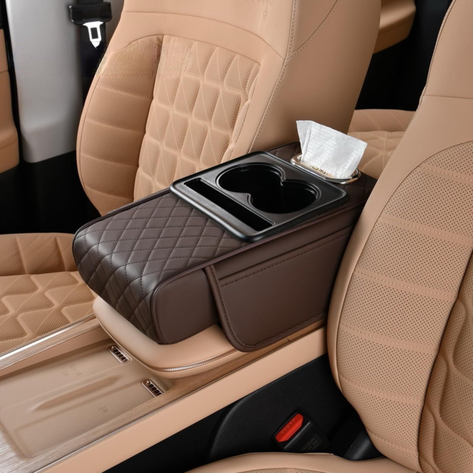 🔥Hot Seller🔥 COD!Car Armrest Pad, 5-in-1 Center Console Cover with 2 Storage Pockets, Cup Holders, Tissue Holder Slot, and Phone Holder丨 Suitable for Sedans丨Car Interior Storage Accessory